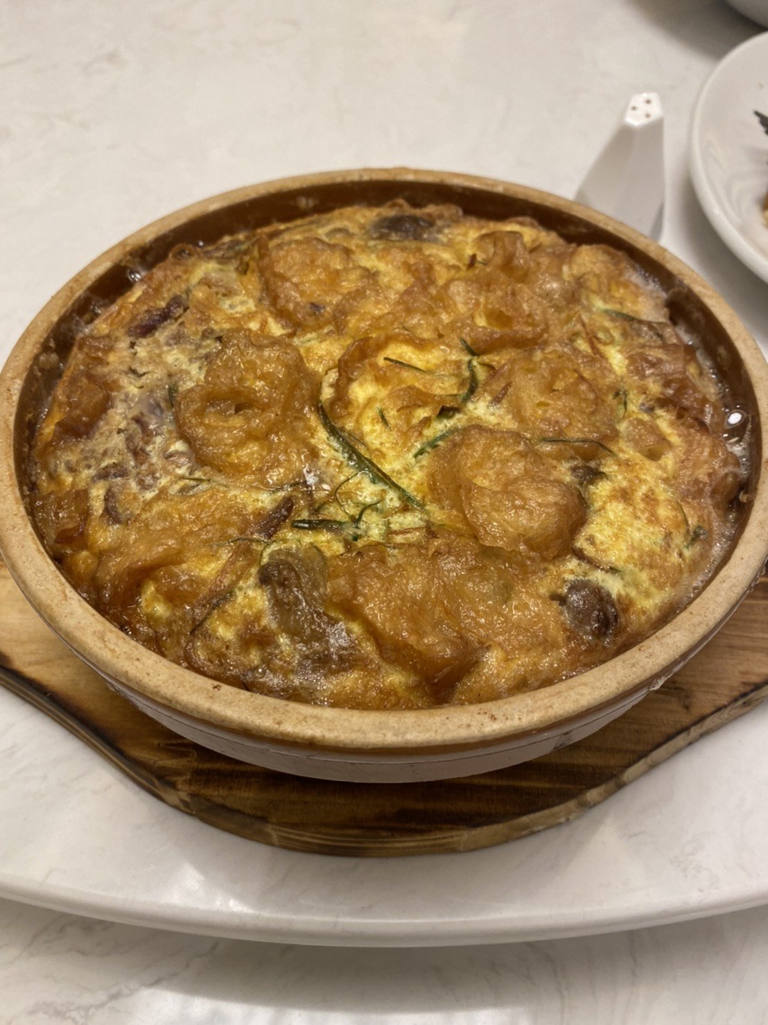 順德菜多以河鮮為主要食材,其中最具特色也最考驗耐心的「砵仔焗魚腸」已有百年歷史,由於費工費時,目前逐漸少見。主廚以本地虱目魚腸入菜,費工處在於需將一副副魚腸去除帶苦味的魚膽與黏液後香煎去油,再以薑、蔥、蒜、陳皮調味,搭配雞蛋與油條先蒸後焗,帶出魚腸獨特的油潤鮮味;
